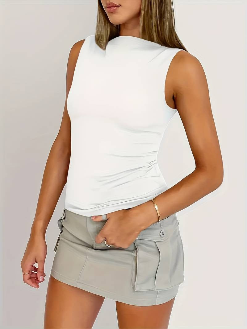 Camisetas Sin Mangas para Mujer - Cuello Barco, Ajustado, Color Sólido, Elástico Moderado, Lavable a Máquina, Ropa Casual para Todas las Estaciones.